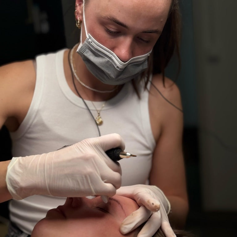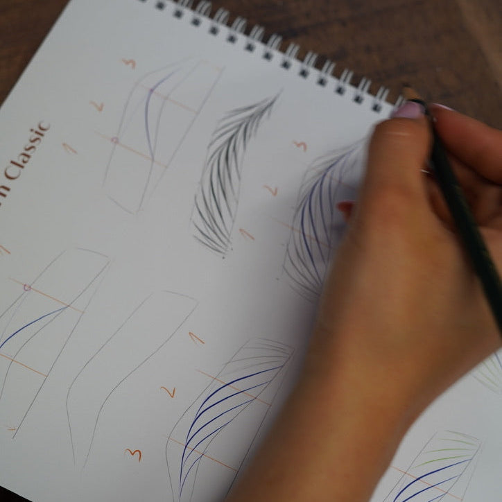 Du startest mit dem Theorieteil, in dem alle Grundlagen behandelt werden: Hauttypen, besonders auf schwierige Hauttypen gehen wir ein, wie zum Beispiel großporige/ fettige Haut, sehr trockene Haut oder superreife Haut. Außerdem werden Themen wie, Farblehre, Maschine, Technik und Handhaltung detailliert besprochen. Darauf aufbauend folgen ausführliche Zeichenübungen mit Bleistift auf Papier. Dabei lernst du unterschiedliche Härchenformen kennen, deren Platzierung innerhalb der Augenbraue und den logischen Aufbau einer kompletten Braue.