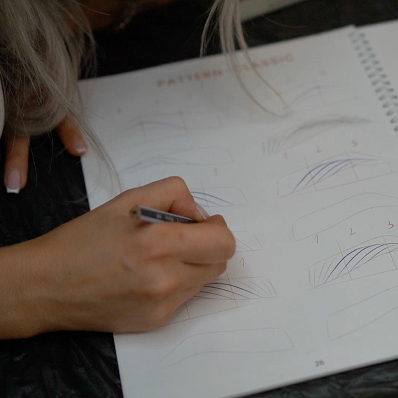 Im Technikteil erkläre ich den Aufbau eines Haares, die Grundlagen der Ringbrows Technik sowie deren Umsetzung in der Praxis. Ergänzend dazu enthält das Buch die Pattern, die dir zeigen, wie eine Augenbraue logisch aufgebaut ist.